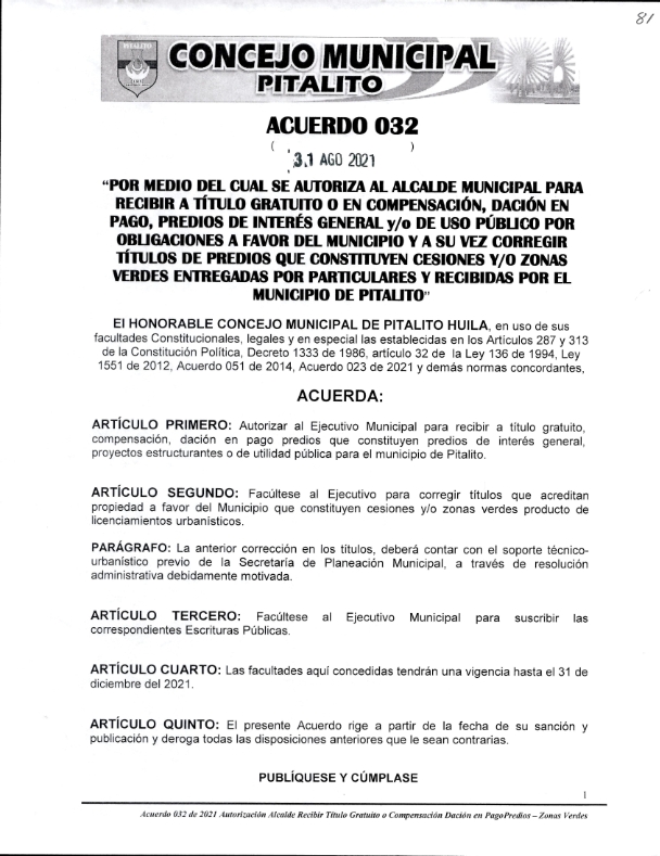 Acuerdo 037 – 2021 Julián Chávez Trujillo septiembre 16, 2021 ACUERDO 037 «POR MEDIO DEL CUAL SE AJUSTA EL PLAN DE DESARROLLO MUNICIPAL 2020-2023, PITALITO REGION QUE VIVE» Descargar Share […]